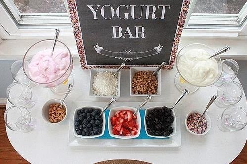 Un buffet de yogurt, por ejemplo, acompañado de frutas, cereales, mermeladas y frutos secos...