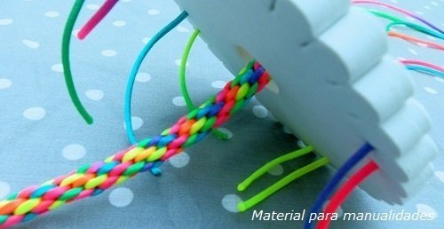Los discos redondos sirven para hacer cordones redondos, y los cuadrados para cordones planos. Lo mejor de estas pulseras es que son muy entretenidas y se avanza bastante rápido, a la vez que favorecen la concentración y la memoria.
