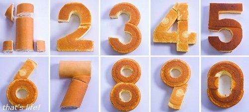 Como ves, tan sólo necesitas combinar varios bizcochos redondos o rectangulares para conseguir la cifra que necesitas.