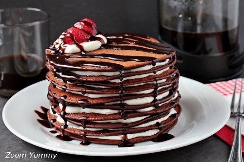 A los niños les encantan los crepes, y son tan fáciles de hacer que no te costará ningún trabajo elaborar torres de tortitas tan altas como ésta, que va rellena de chocolate fundido.